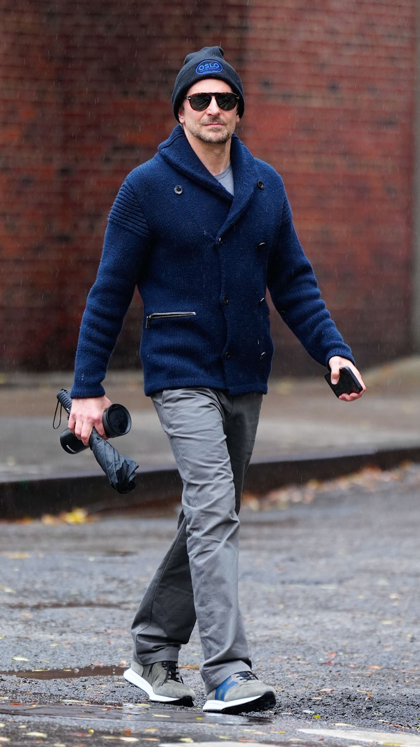 Eddie Redmayne sports a cool multi-colored zip-up cardigan sweater. This winter wardrobe staple looks great and can be styled nicely with a laid-back look.